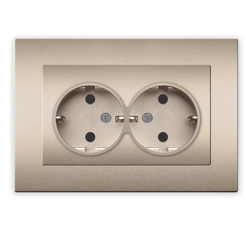 Розетка 2-м СП Афина 16А IP20 с заземл. в сборе шампань Universal A0128-Br