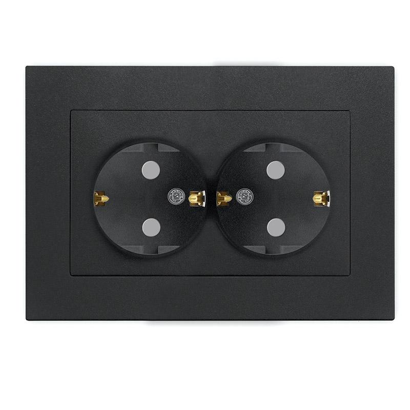 Розетка 2-м СП Афина 16А IP20 с заземл. защ. шторки в сборе графит Universal A0050-Gr