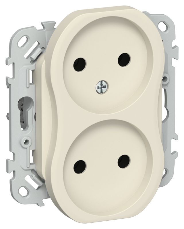 Розетка 2-м СП FLITE РС02-0-ФлСл 10А без заземл. без защ. шторок механизм сливочный IEK FI-R20-10-K86