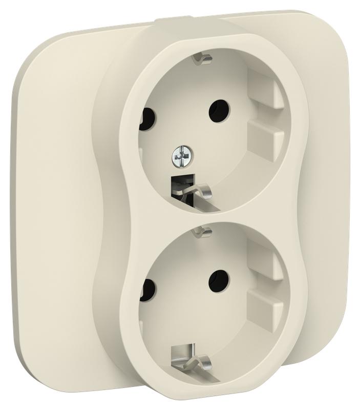 Розетка 2-м СП FLITE РС12-0-А-ФлСл 16А с заземл. без защ. шторок в сборе механизм сливочный IEK FI-R21A-16-K86