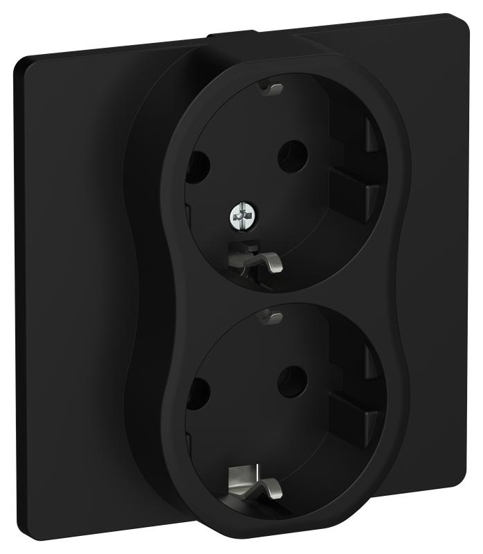 Розетка 2-м СП FLITE РС12-0-К-ФлЧ 16А с заземл. без защ. шторок в сборе механизм черн. IEK FI-R21C-16-K02