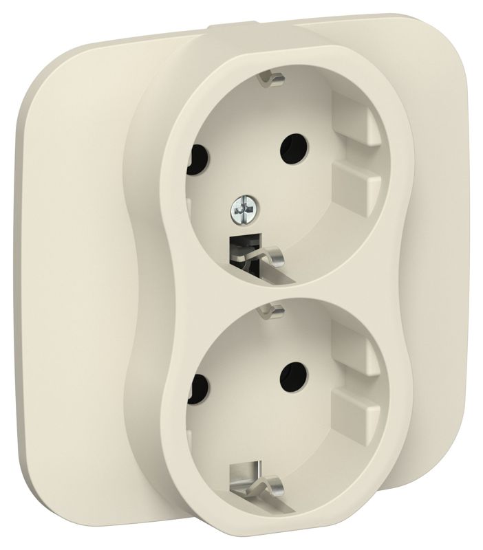 Розетка 2-м СП FLITE РС12-1-А-ФлСл 16А с заземл. без защ. шторок безвинтовое крепление в сборе механизм сливочный IEK FI-R21A-16-1-K86