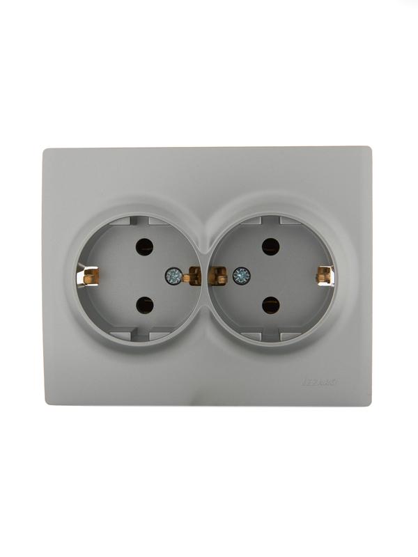 Розетка 2-м СП Karina с заземл. керамика матов. серебр. LEZARD 707-4300-127