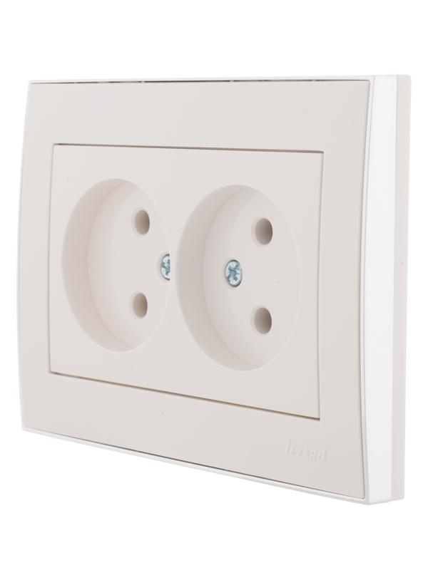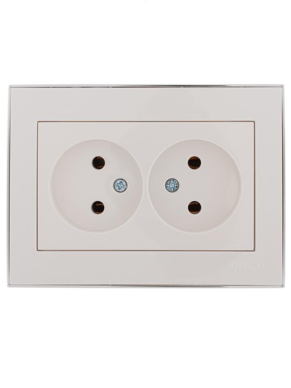 Розетка 2-м СП Rain 16А IP20 без заземл. с хром. боковой вставкой керамика бел. LEZARD 703-0225-128