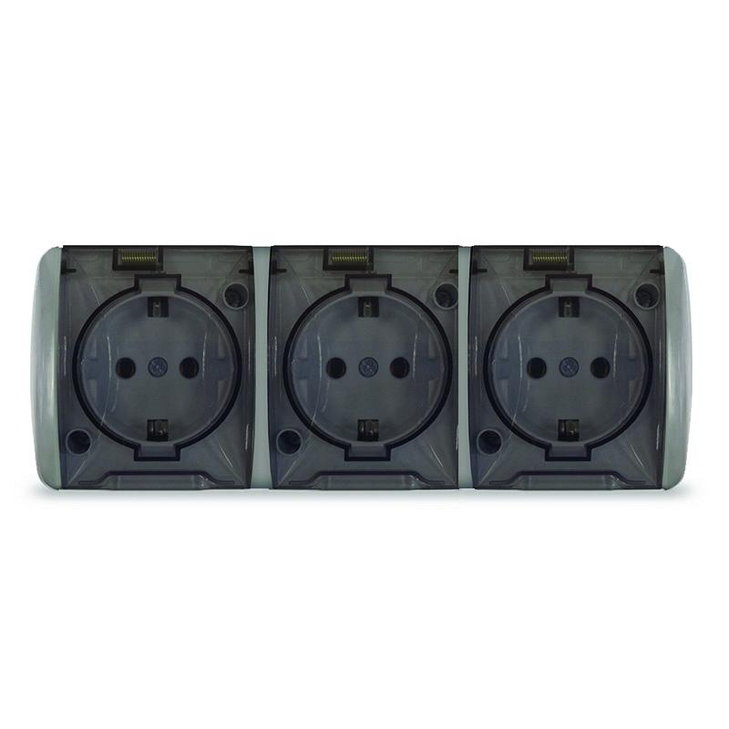 Розетка 3-м ОП Клио 16А IP54 с заземл. с прозр. крышкой сер. Universal К2235-Gr