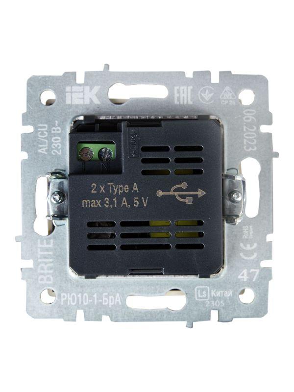 Розетка BRITE USB A+A 3.1А РЮ10-1-БрА механизм алюм. IEK BR-U21-D31-K47