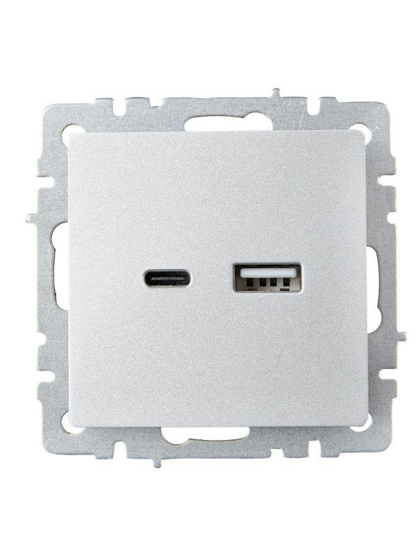 Розетка BRITE USB A+C 18Вт РЮ11-1-БрА механизм алюм. IEK BR-U22-018-K47