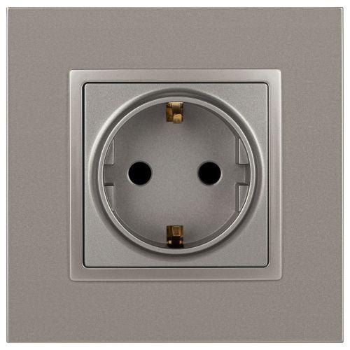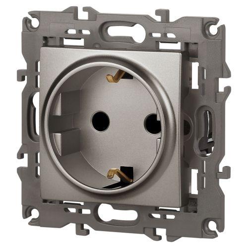 Розетка с заземлением и шторками серии Эра Elegance цвет титан 14-2102-16. Характеристики 16А 250В. Оснащена автоматическими клеммами для надёжной фиксации жил кабеля в механизме. Рамки приобретаются отдельно.