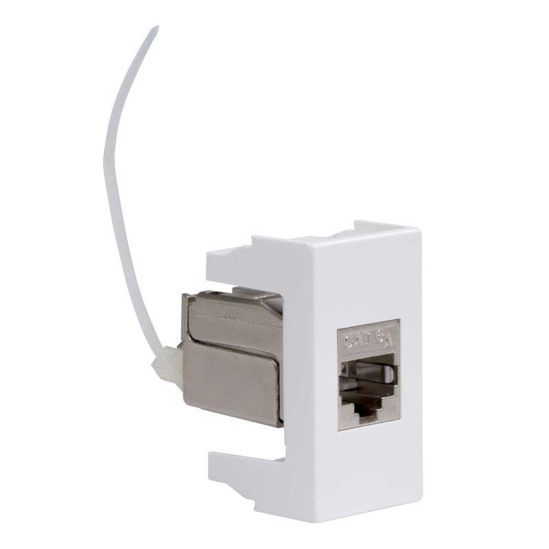 Компьютерная розетка. Назначение: подсоединение кабеля к компьютеру, принтеру и прочей оргтехнике. Характеристики: 8Р8С; комплектуются одномодульным гнездом; для заделки контактов в розетки использовать инструмент типа 110. RJ-45. Категория: 6А. Тип гнезда: Keystone. Производитель гнезда: ДКС Hyperline. Установочный размер: 45х25. Кол-во модулей: 1. Цвет: белый