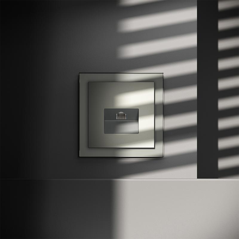 Место установки. Компьютерные розетки применяются в домашних и офисных сетях для подключения персонального компьютера, принтера, роутера или любого другого сетевого устройства к современным информационным системам. Корпус. Розетка выполнена в фирменной стилистике Voltum. Внешние материалы — это поликарбонат высокой прочности. Устройство оборудовано специальным сетевым разъемом (или сразу двумя у модели RJ45+RJ45). Конструктивные особенности. Компьютерная розетка RJ45 совместима с информационными сетями шестого поколения со скоростью передачи данных до 1000 Мбит/сек. Также она поддерживает стандарт 5e. Подключение к конечному устройству выполняется через сетевой кабель (витую пару)