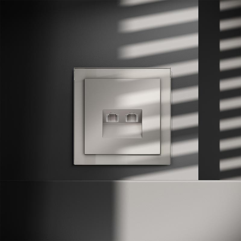 Место установки. Компьютерные розетки применяются в домашних и офисных сетях для подключения персонального компьютера, принтера, роутера или любого другого сетевого устройства к современным информационным системам. Корпус. Розетка выполнена в фирменной стилистике Voltum. Внешние материалы — это поликарбонат высокой прочности. Устройство оборудовано специальным сетевым разъемом (или сразу двумя у модели RJ45+RJ45). Конструктивные особенности. Компьютерная розетка RJ45 совместима с информационными сетями шестого поколения со скоростью передачи данных до 1000 Мбит/сек. Также она поддерживает стандарт 5e. Подключение к конечному устройству выполняется через сетевой кабель (витую пару)