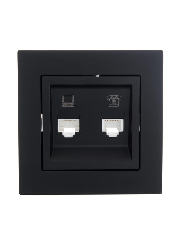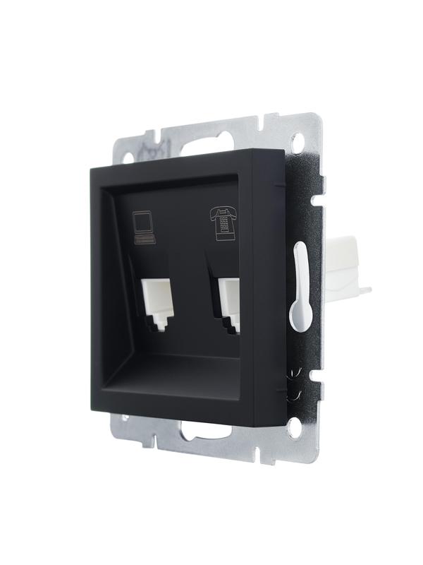 Розетка компьютерная + телефонная 1-м СП Vesna механизм черн. бархат LEZARD 742-4288-143