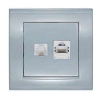 Розетка компьютерная + телефонная 2-м СП Бриллиант серебр. UNIVersal 7949865