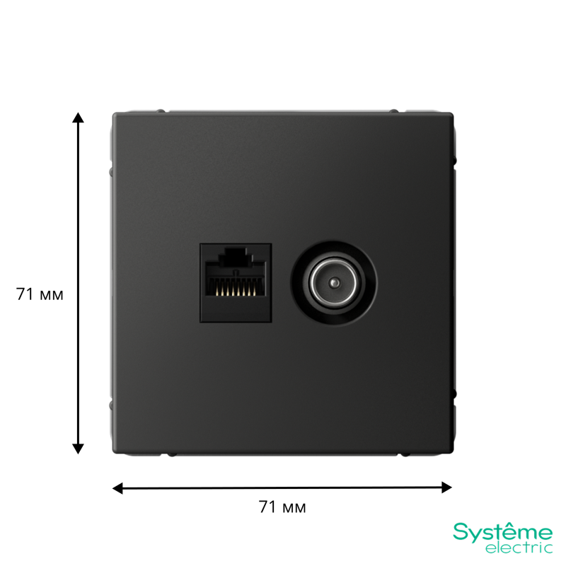 Механизм Systeme Electric серии ArtGallery в цвете базальт двойной розетки разъёмами RJ45 категория 5е и TV предназначен для удобного и быстрого подключения вашего компьютера и телевизора к соответствующим сетям.