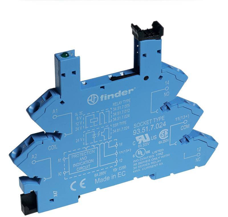 Розетка с безвинт. клеммами (пружинный зажим) для реле 34 серии 24В AC/DC в комплекте пластик. клипса LED FINDER 93510024