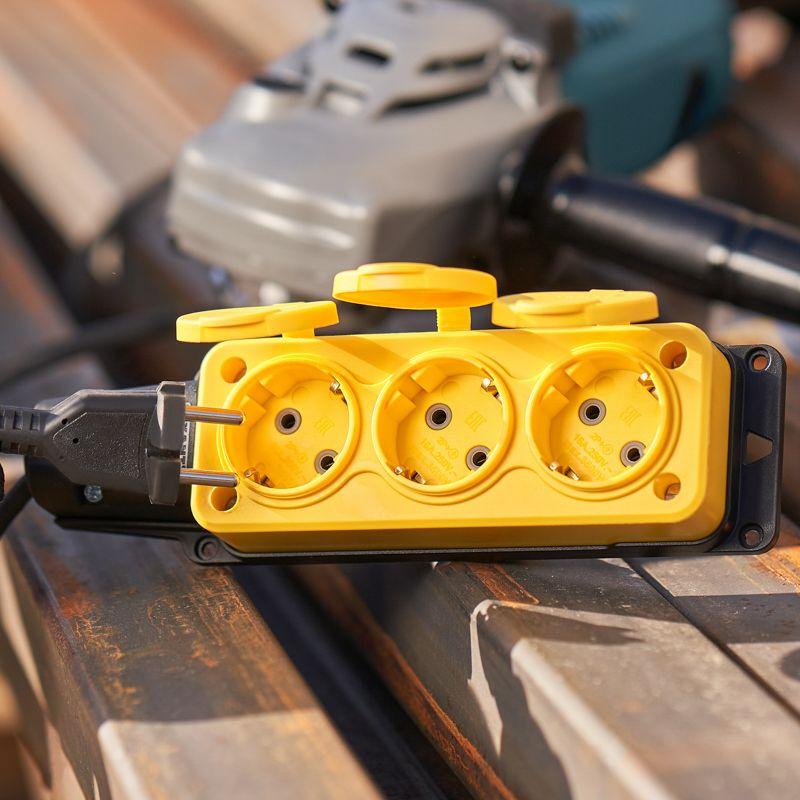 Степень защиты IP54 позволяет использовать розетку для организации электропитания под открытым небом, а в дождь – под навесом. Не допускается погружение в воду.