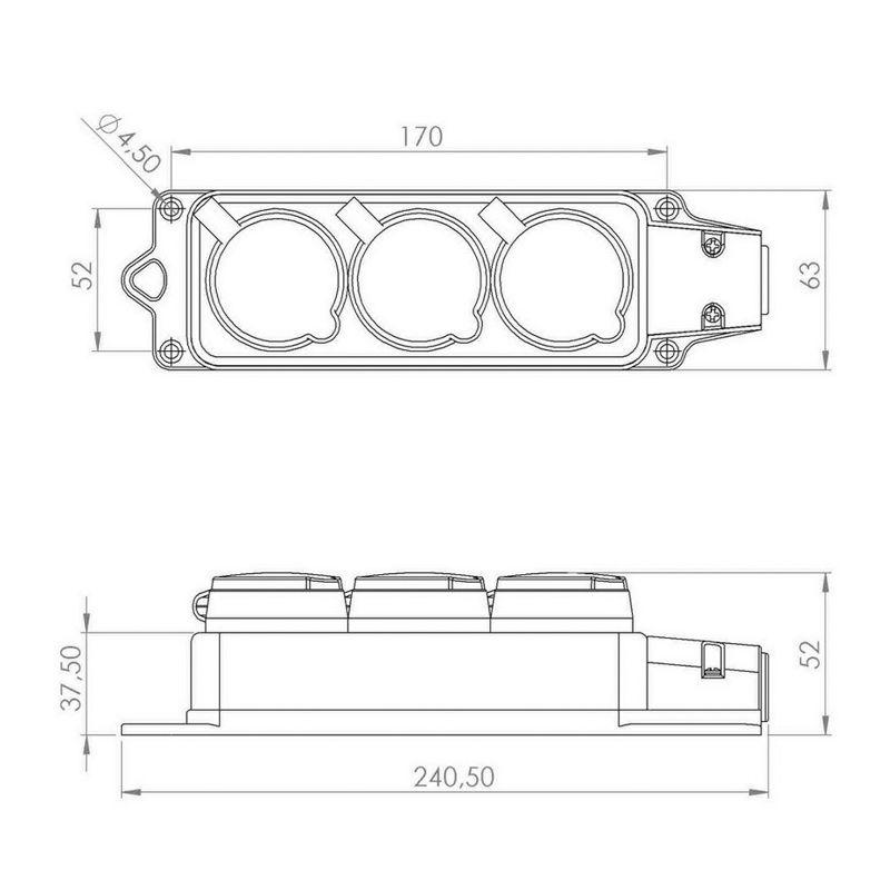 Допускается присоединение трех вилок одновременно с суммарным максимальным током по ним 16 А. Каждое розеточное место оснащено защитной крышкой. Для обеспечения безопасности детали, соприкасающиеся с токоведущими частями выполнены из огнеупорного материала, устойчивого к температуре до +850 ?С.
