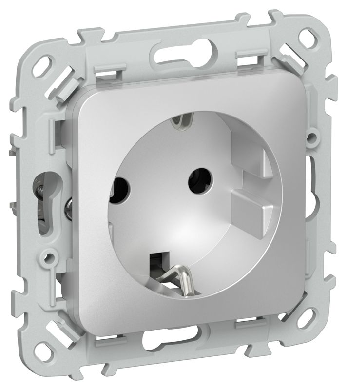 Розетка СП FLITE РС11-0-ФлА 16А с заземл. без защ. шторок механизм алюм. IEK FI-R11-16-K47