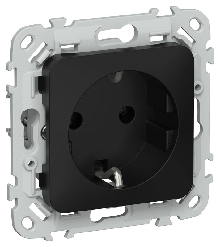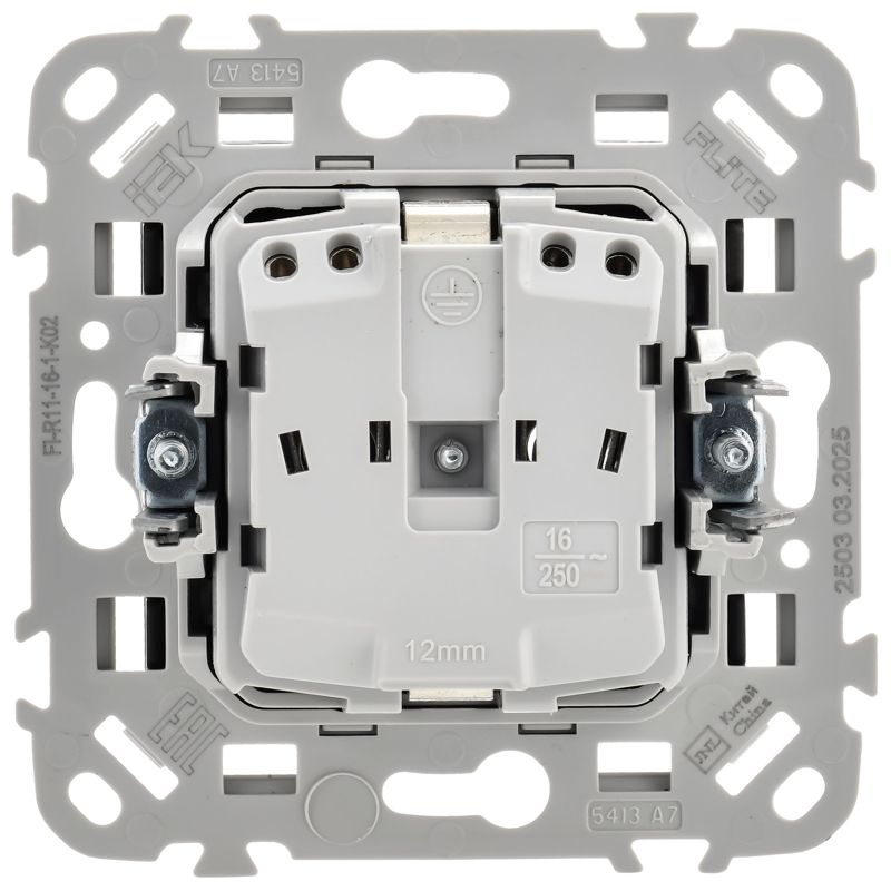 Розетка СП FLITE РС11-1-ФлЧ 16А с заземл. без защ. шторок безвинтовое крепление механизм черн. IEK FI-R11-16-1-K02