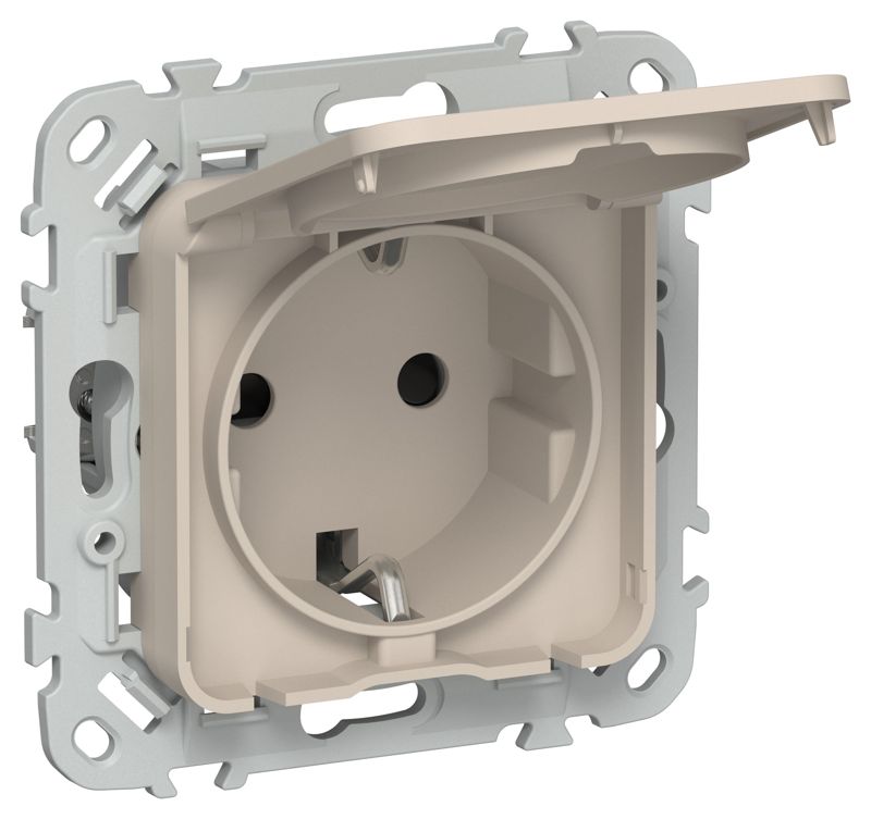 Розетка СП FLITE РСшкр11-1-44-ФлЛ 16А IP44 с заземл. с защ. шторками и крышкой безвинтовое крепление механизм льняной IEK FI-R16-16-1-44-K88