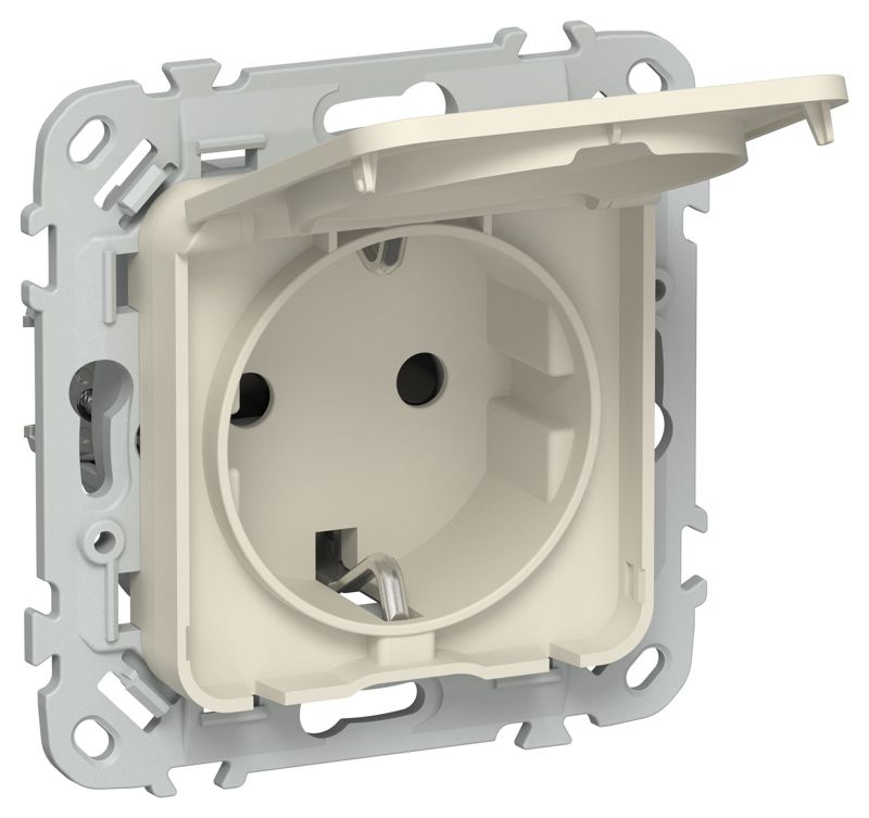 Розетка СП FLITE РСшкр11-1-44-ФлСл 16А IP44 с заземл. с защ. шторками и крышкой безвинтовое крепление механизм сливочный IEK FI-R16-16-1-44-K86