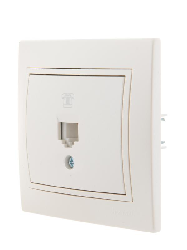 Розетка телефонная 1-м СП Mira RJ11 16А IP20 евро стандарт со вставкой жемчуж./бел. перламутр. LEZARD 701-3030-137