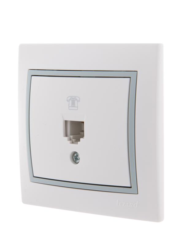 Розетка телефонная 1-м СП Mira RJ11 бел./сер. LEZARD 701-0215-137