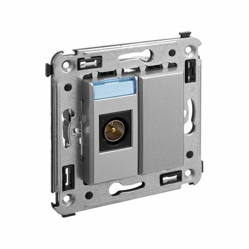Одиночные телевизионные розетки предназначены для скрытой установки в стенах и применяются для подключения телевизионного кабеля. TV-розетки производства ДКС рассчитаны на частоту до 2400 Гц. Материал – металл, пластик. Цвет: "Закаленная сталь". Количество модулей в изделии – 2.