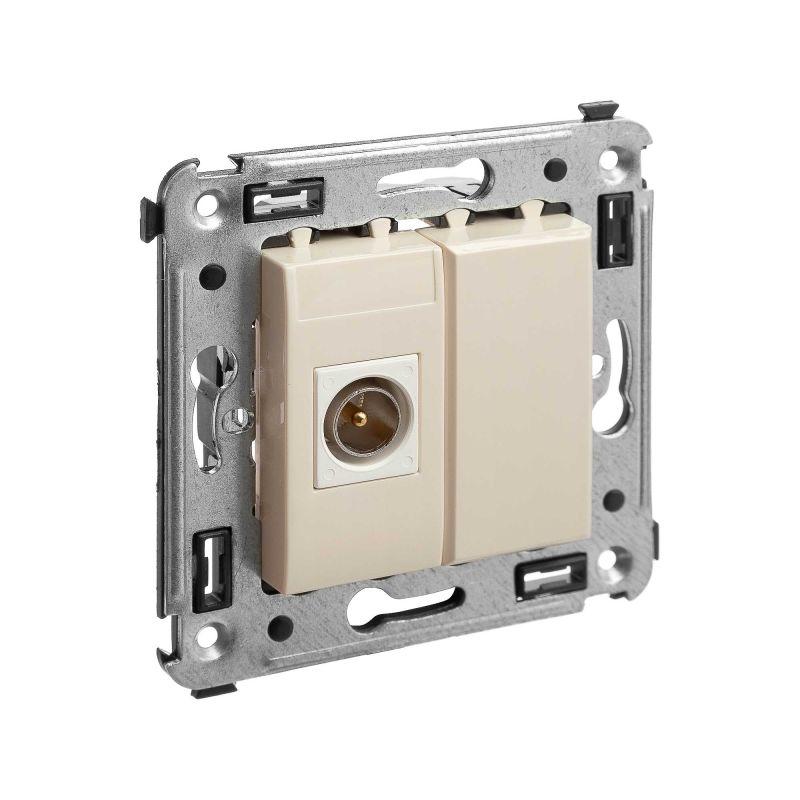 Одиночные телевизионные розетки предназначены для скрытой установки в стенах и применяются для подключения телевизионного кабеля. TV-розетки производства ДКС рассчитаны на частоту до 2400 Гц. Материал – металл, пластик. Пластиковые части имеют цвет "Ванильная дымка" – это нежный, теплый пастельный оттенок, идеально сочетающийся со светлыми оттенками и теплой цветовой гаммой, несущий ощущение уюта. Количество модулей в изделии – 2.