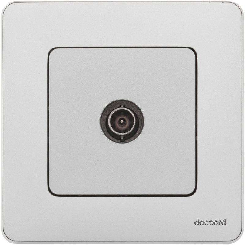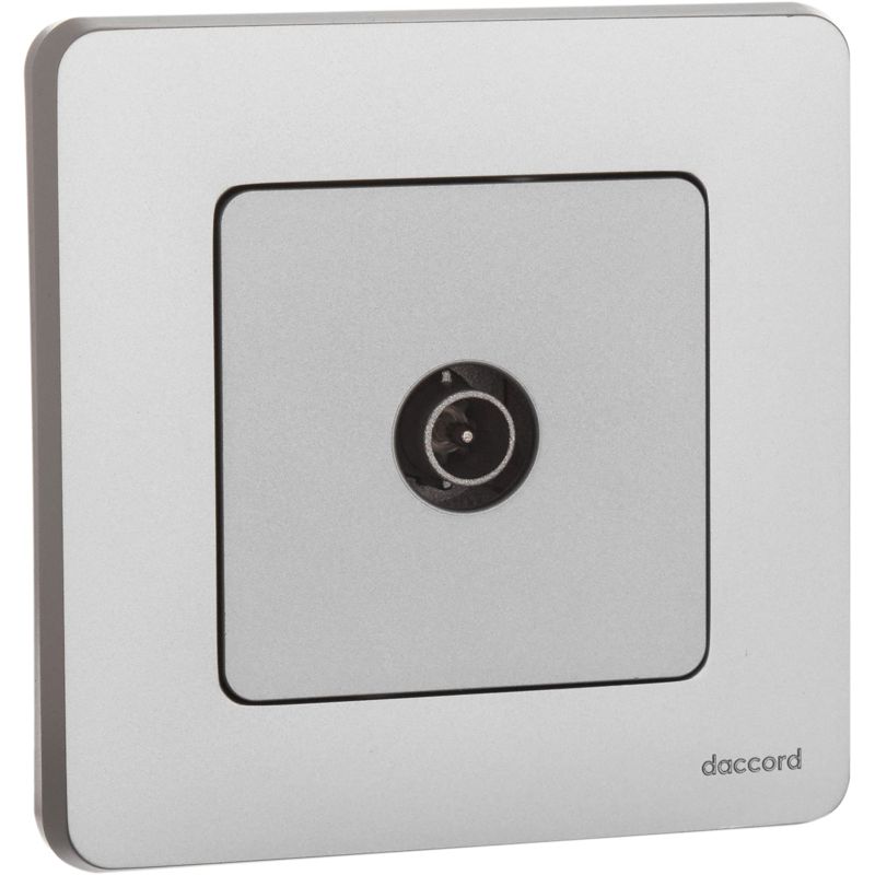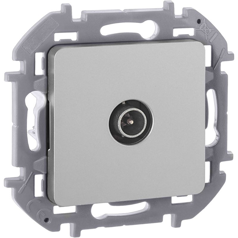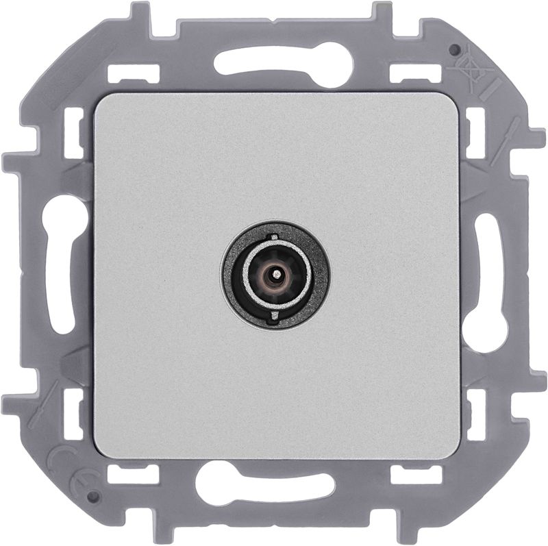Розетка телевизионная для скрытого монтажа Inspiria, проходная для схемы "шлейф", затухание 14дБ, 4-862МГц, цвет "Алюминий". Предназначена для подключения нескольких ТВ приемников к антенне и используется в схеме "шлейф". Устанавливается в линии между антенной и оконечной розеткой.