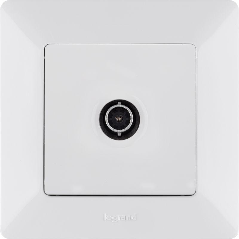 Представляет собой одноместный модуль ТV-розетки с одинарным разъемом для подключения. Изготовлен из пластика, белого цвета. Применяется в диапазоне 4-2400 МГц.