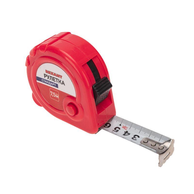 Измерительная рулетка REXANT Стандарт используется при проведении измерительных работ в строительстве, хозяйстве, ландшафтных и геодезических исследованиях. Двухкомпонентный прорезиненный корпус, выполненный из ударопрочного пластика, не скользит в руках. Прочное полотно без изломов имеет глянцевое покрытие.