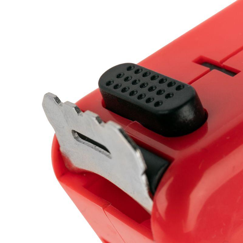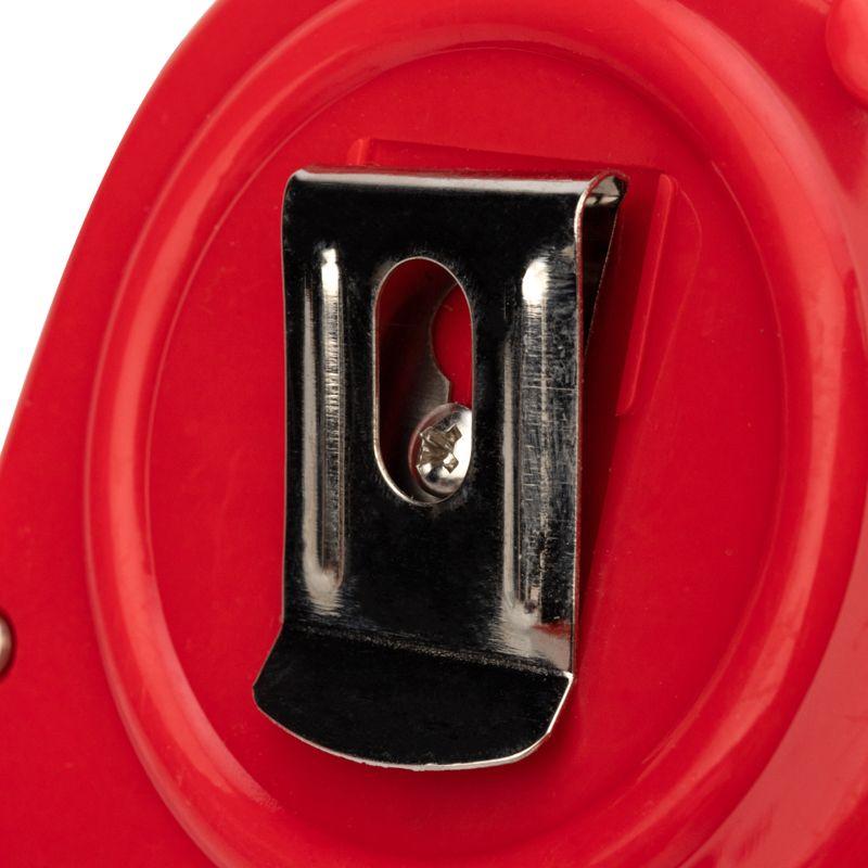 На корпусе расположена клипса-зажим для фиксации рулетки на ремне, кармане или поясной сумке. Ремешок позволяет надевать инструмент на запястье, чтобы освободить руки для работы.