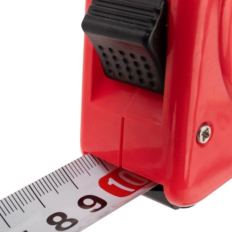 Инструмент оснащен удобным зацепом с отверстием посередине, которое позволяет зафиксировать полотно рулетки на шляпке гвоздя или самореза.