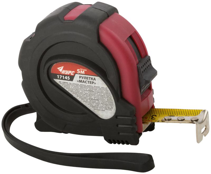 Рулетка КУРС серии "Мастер" предназначена для измерений линейных размеров. Корпус рулетки изготовлен из ударопрочного ABS-пластика, устойчивого к механическим воздействиям. Резиновые накладки на корпусе предотвращают повреждения инструмента при падении или ударе. Рулетку можно крепить на ремне с помощью металлической клипсы. Тканевый ремешок позволяет носить рулетку на руке или хранить в подвешенном положении.