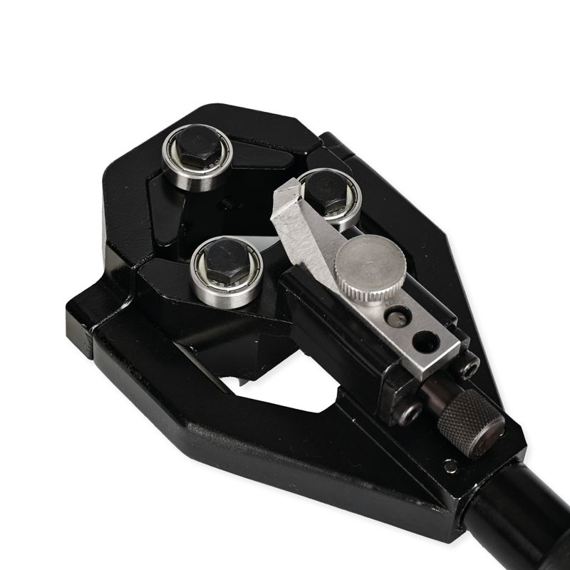 Инструмент для снятия изоляции из сшитого полиэтилена SHTOK СИ-40 06003 - это профессиональный универсальный инструмент длиной 247 мм. Он служит для снятия полупроводящего слоя и изоляции из сшитого полиэтилена с кабелей. Перемещение каретки осуществляется вращением ручки, а перемещение ножа - винтом подачи ножа. Глубина и скорость реза прямо зависят от приложенного усилия.