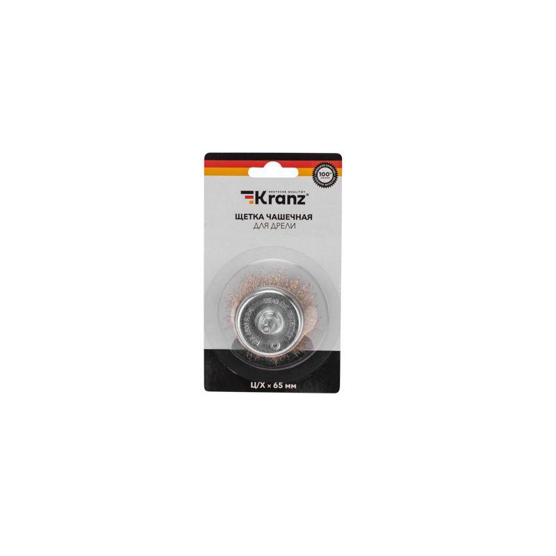 Щетка чашечная для дрели витая латунированная проволока 65мм Kranz KR-91-1254