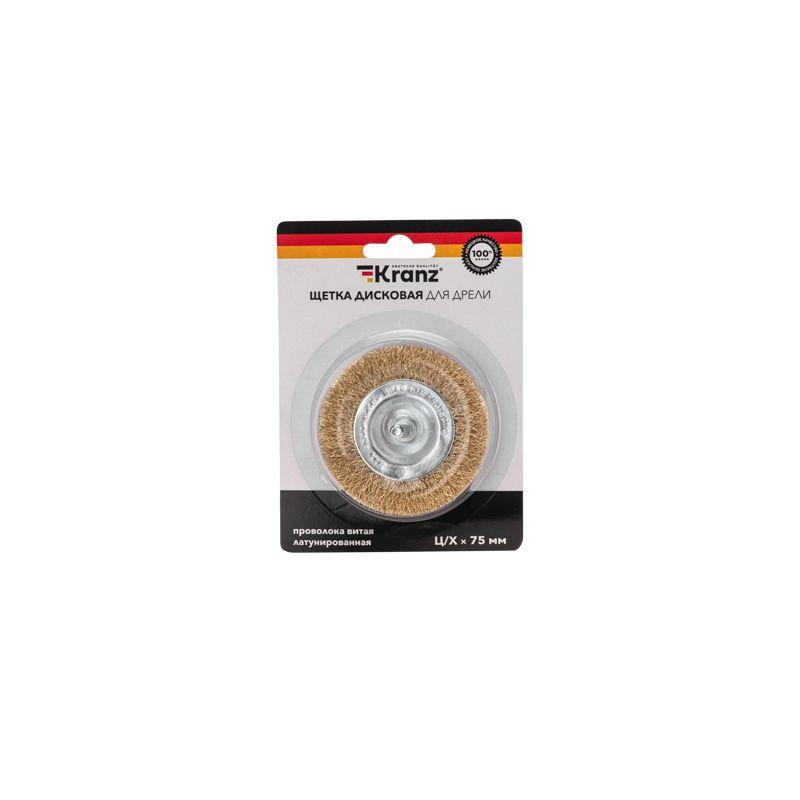 Щетка дисковая для дрели витая латунированная проволока 75мм Kranz KR-91-1249