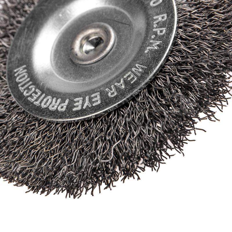 Витая щетина оптимально подходит для аккуратной обработки и шлифовки поверхностей, позволяя удалить тонкий слой материала. Корпус щетки оцинкован для обеспечения коррозионной стойкости, а щетина покрыта маслом.