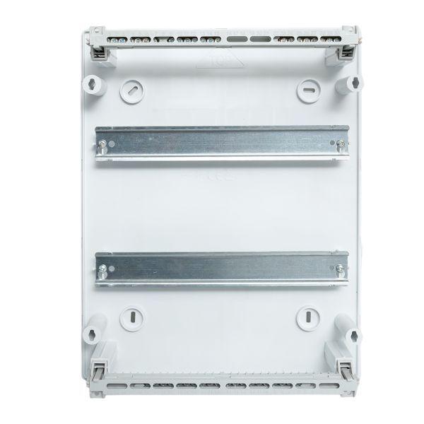 Корпуса пластиковые серии «Unix IP41» предназначены для сборки силовых распределительных и слаботочных щитов. На DIN-рейки устанавливается модульное оборудование. На монтажные платы - антенные разветвители, Wi-Fi роутеры, патч-панели и иное слаботочное оборудование. Щиты устанавливаются на поверхность стены. Ассортимент корпусов с din-рейками представлен размерами вместимостью до 72 модулей, по 12 или 18 модулей в ряду, с белой глухой или прозрачной тонированной дверью, с DIN-рейками или перфлорированными монтажными платами. Особенностью корпусов является плоское основание, упрощающее сборку и подключения внутри, лицевая панель Корпуса изготовлены из качественного глянцевого ABS-пластика, имеют минималистичный дизайн и впишутся в большинство интерьеров.
