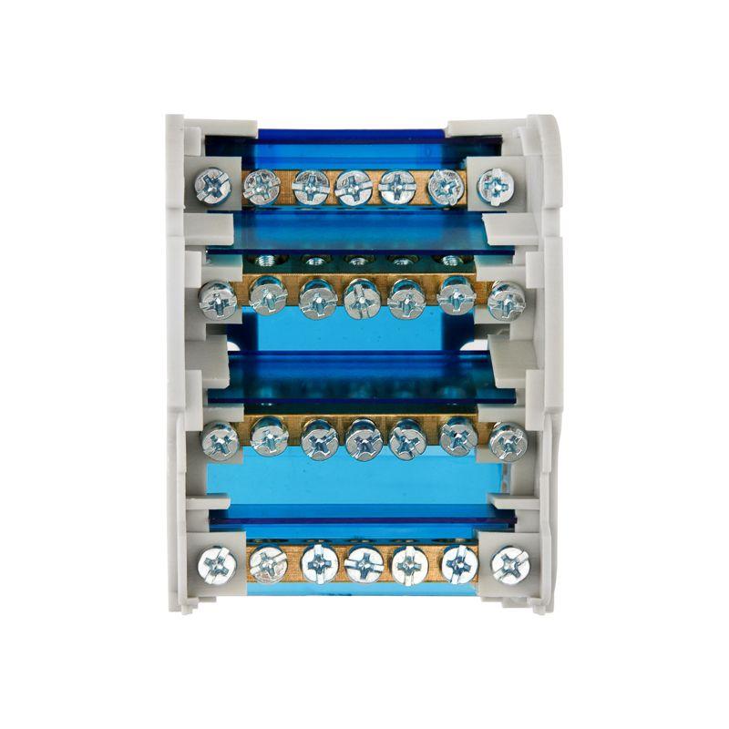 Изолированная шина на DIN-рейку REXANT применяется при комплектации щитового оборудования для подсоединения нулевого провода, провода заземления и фазных проводников.