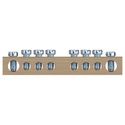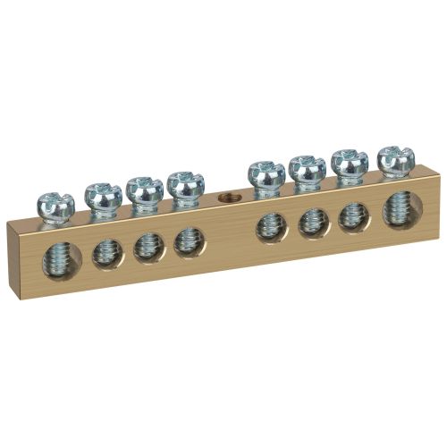 Шины латунные PEN "земля-ноль" применяются для электрического и механического соединения нулевых, защитных и фазных проводников в электрических щитах и распределительных устройствах. Изделия выполняются из латуни соответствующего сечения с отверстиями обладающими винтовыми зажимами для подключения проводников.