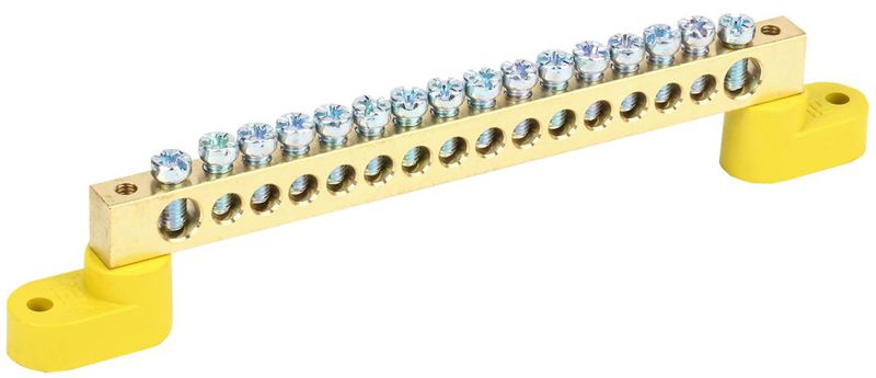 Шина PE "земля" ШНИ-8х12-16-У2-Ж на двух угловых изоляторах IEK YNN10-812-16C2-K05
