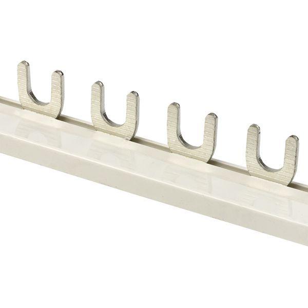 Шины соединительные представляют собой пластины, выполненные из меди (шины на 100 А – из луженой меди), закрепленные в корпусе из диэлектрического материала, не поддерживающего горение, и выпускаются стандартной длиной 1 метр. Шины соединительные делятся на два типа - FORK («вилка») и PIN («гребенка») на номинальные токи 63 и 100 А. Могут быть выполнены в одно- двух- трех- и четырехполюсном исполнений.
