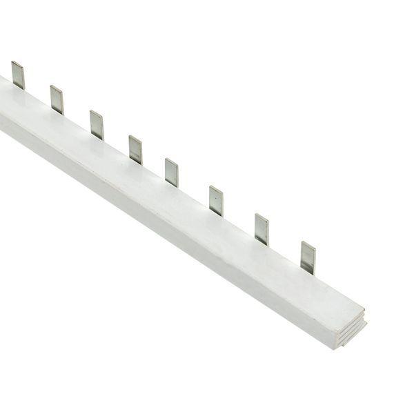 Шины соединительные представляют собой пластины, выполненные из меди (шины на 100 А – из луженой меди), закрепленные в корпусе из диэлектрического материала, не поддерживающего горение, и выпускаются стандартной длиной 1 метр. Шины соединительные делятся на два типа - FORK («вилка») и PIN («гребенка») на номинальные токи 63 и 100 А. Могут быть выполнены в одно- двух- трех- и четырехполюсном исполнений.