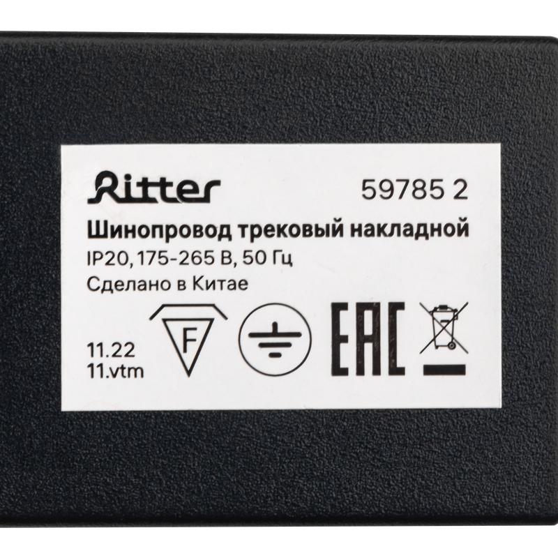 Шинопровод трековый накладной 1ф ARTLINE с питанием и заглушкой 1м алюм./медь с держателями с пластиковой планкой черн. Ritter 59785 2