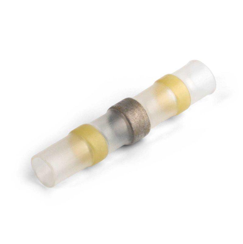 • по краям соединителя на внутренней поверхности термоусаживаемой трубки интегрированы цветные пояски термоплавкого клея, обеспечивающие полную герметичность соединения после усадки