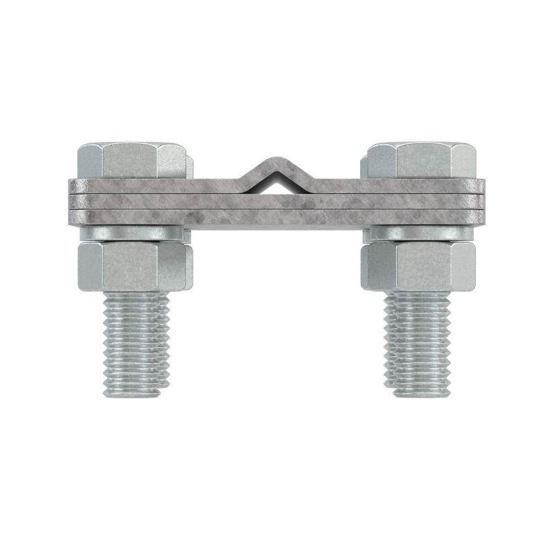 Соединитель "пруток - полоса" с разделительной пластиной используется для параллельного либо крестового соединения прутка 8-10 мм с полосой 25 мм. Материал - горячеоцинкованная сталь.