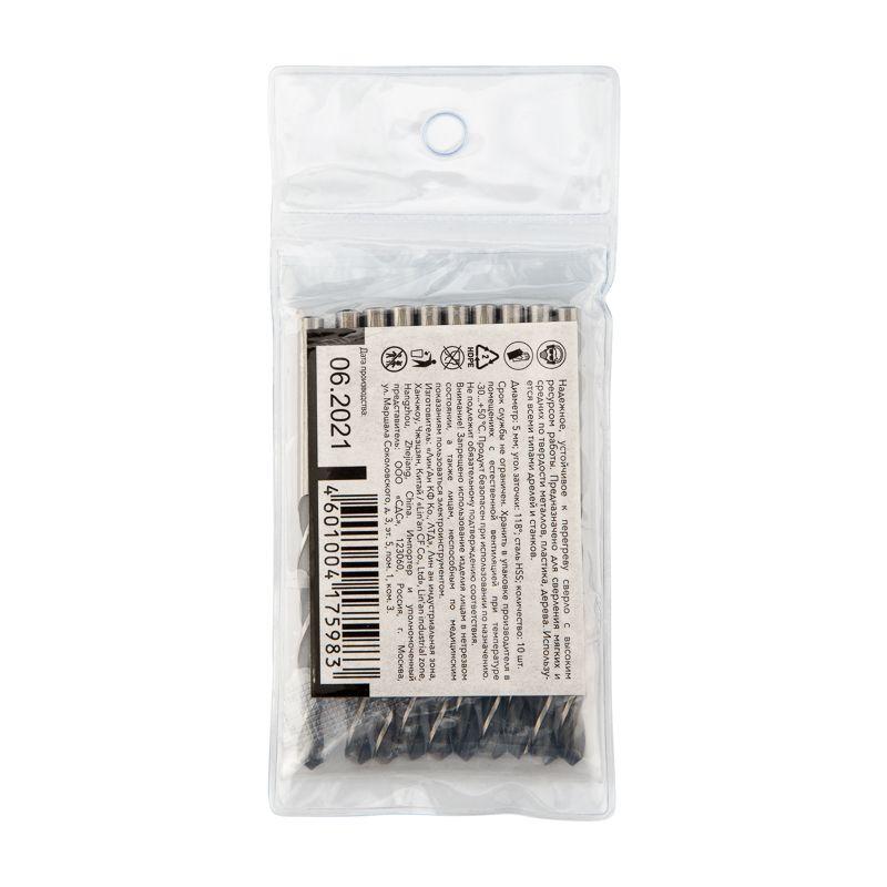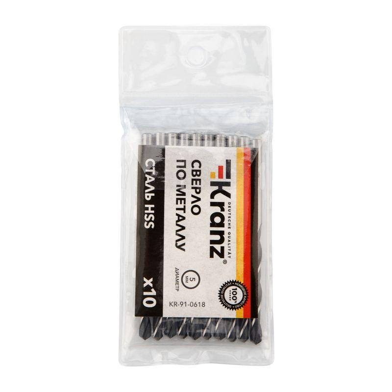 Сверло по металлу 5.0мм HSS DIN 338 (уп.10шт) Kranz KR-91-0618