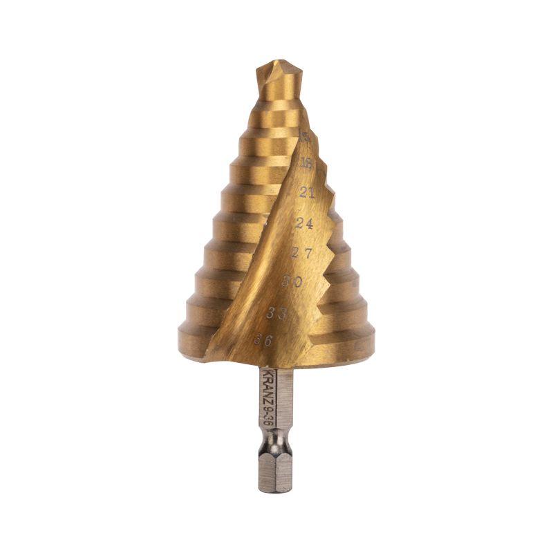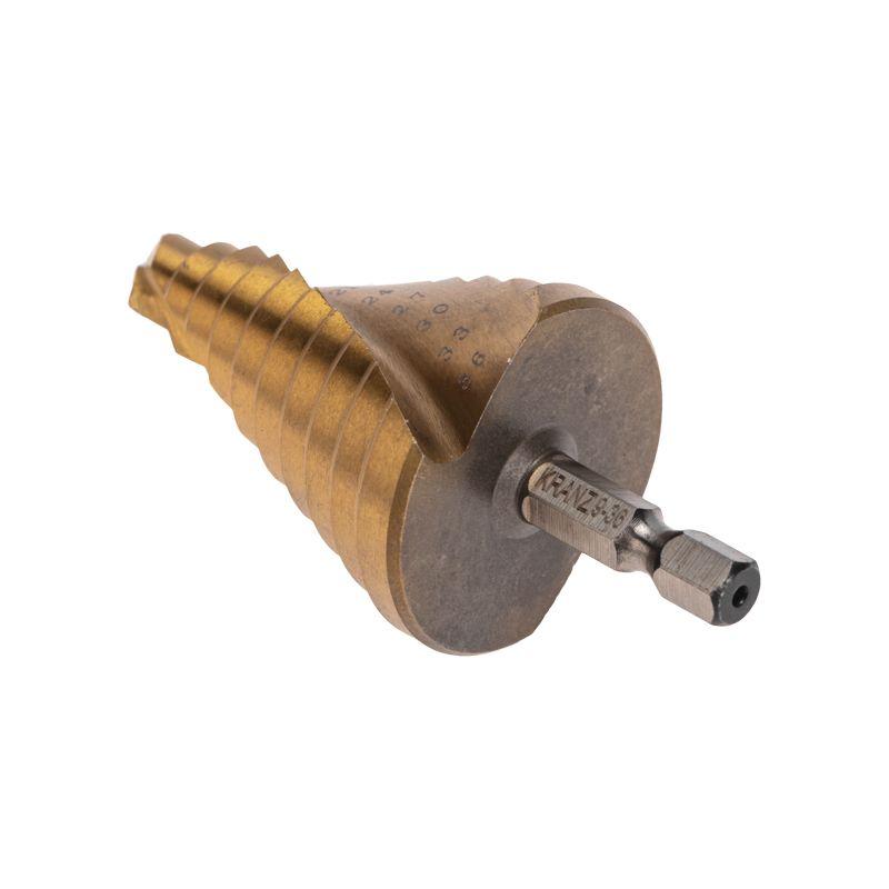 Ступенчатое сверло KRANZ применяется при выполнении монтажно-сборочных работ для сверления отверстий различных диаметров без перестановки режущего инструмента. Применяется в работе с такими материалами, как пластик, дерево, металл и др.